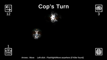 Une fois les actions du Meurtrier terminées, le Policier peut éclairer la pièce deux fois à l’aide de sa lampe torche. Une fois sa lampe torche allumé, sa position est révélée au Meurtrier.