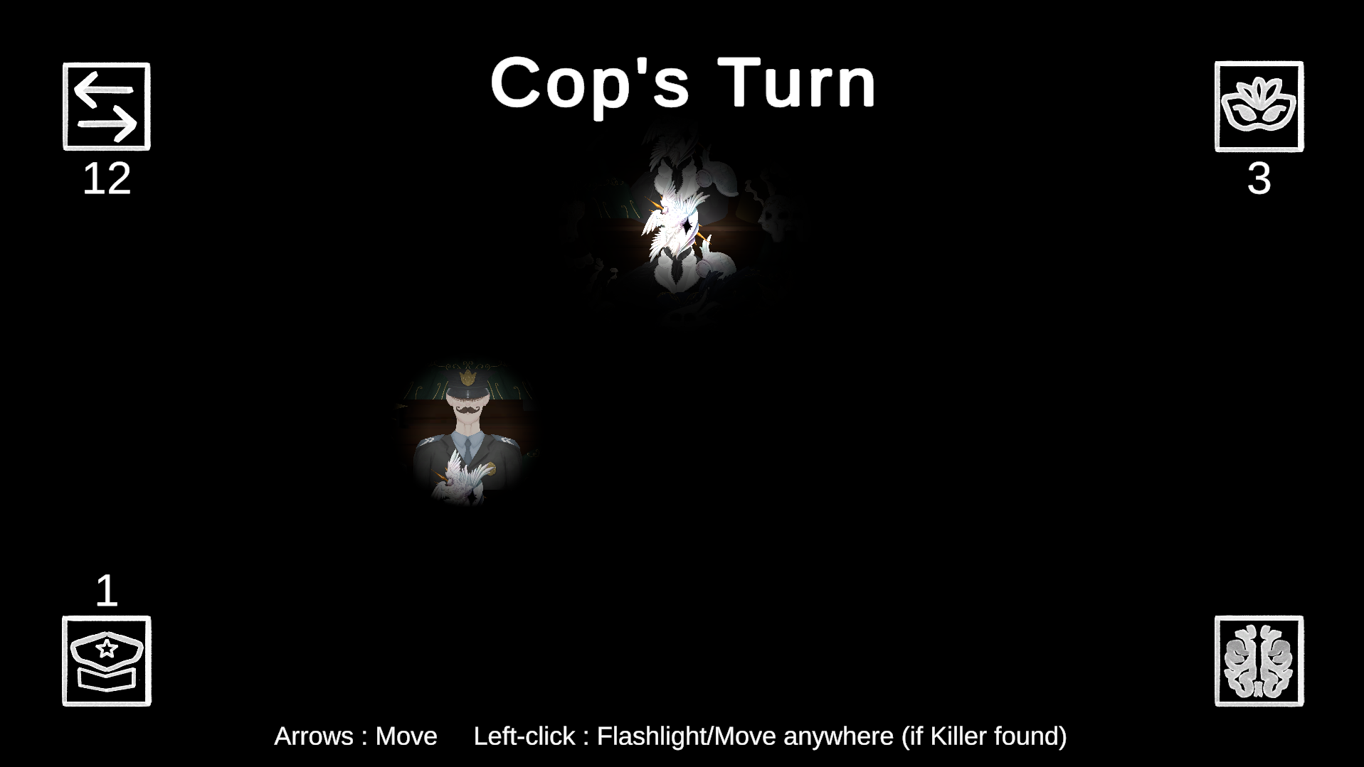 - Clique gauche : Lampe-torche/Se déplacer (si le tueur est trouvé)
